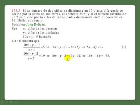 Baldor 198: 5 - 198 5 - Problemas sobre ecuaciones simultáneas Solución de todos los Ejercicios del álgebra de Baldor en http://www.calculo21.org/index.htm.